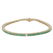 18kt Yellow Gold Diamond and Green Emerald Tennis Bracelet