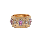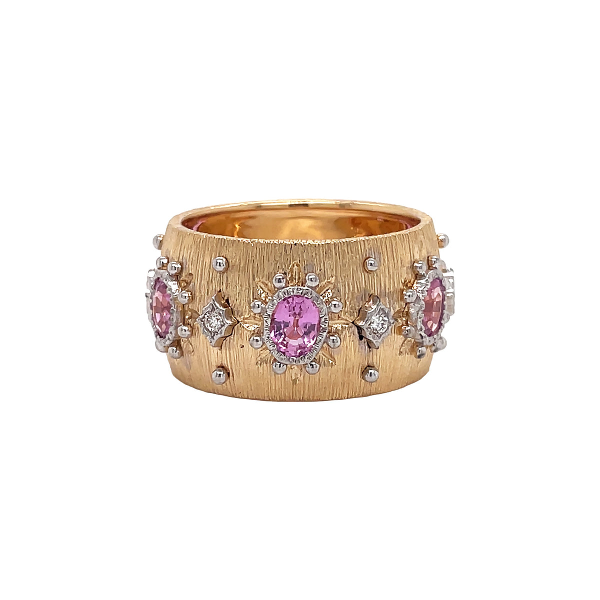 18kt Yellow Gold Diamond and Pink Sapphire Band