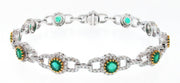 18kt white gold micro prong set round brilliant diamond with 18kt yellow gold prong set emerald bracelet