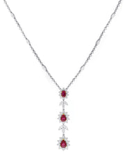 18kt two tone gold ruby and diamond necklace with prong set fancy cut rubys and prong set marquise and round cut brilliant diamonds.