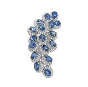 18kt white gold 4 prong set round brilliant diamond and blue sapphire cocktail ring.
