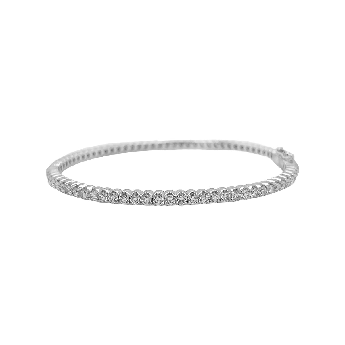18kt white gold micro prong set round brilliant diamond bangle(diamonds goes all the way around).