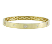 18kt yellow gold micro pave set round brilliant diamond star design bangle.