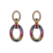 18kt Rose Gold Diamond and Multi-Sapphire Dangling Earrings