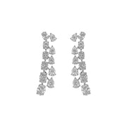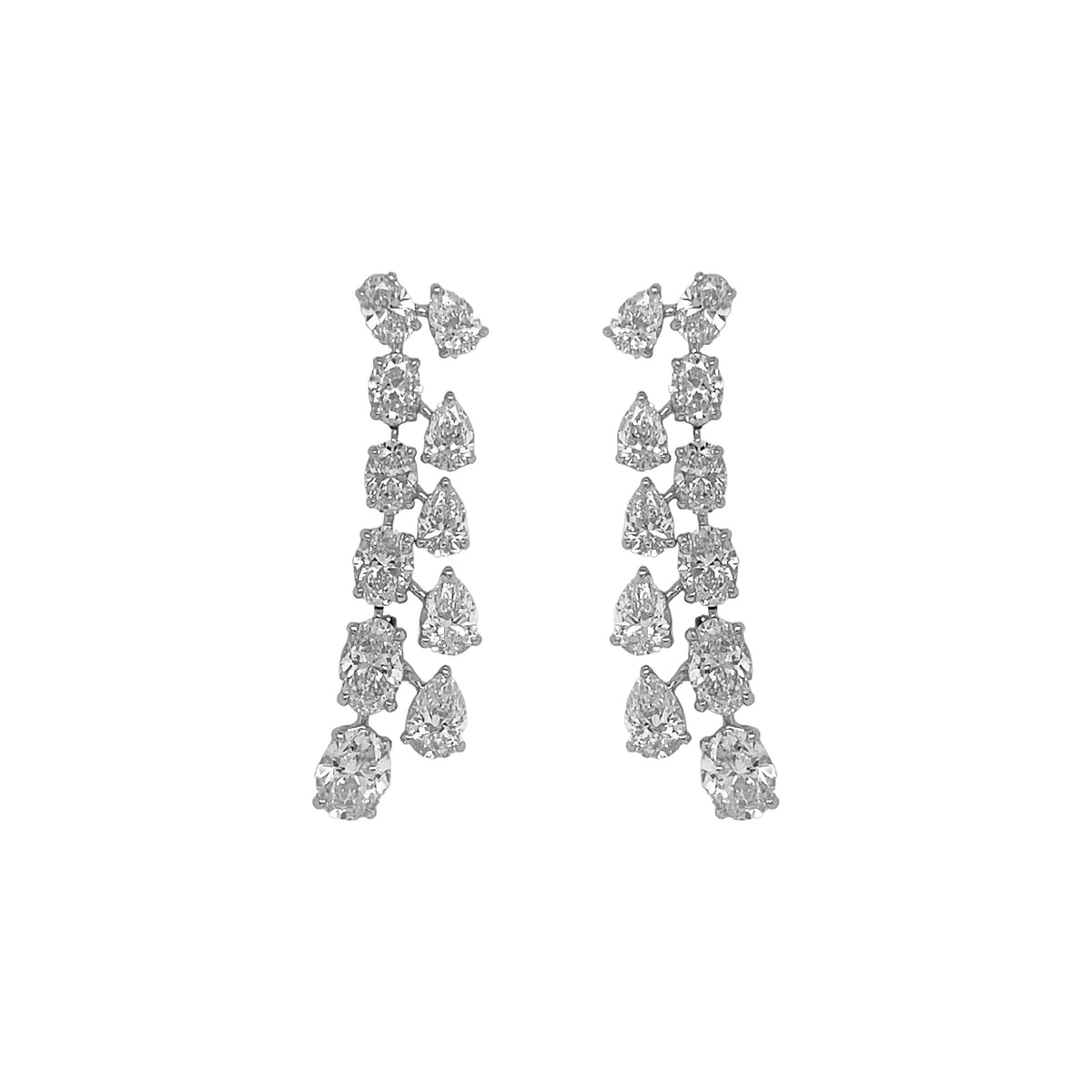 18kt white gold prong set GIA certified pear and oval shaped diamond 2-row dangling earrings.