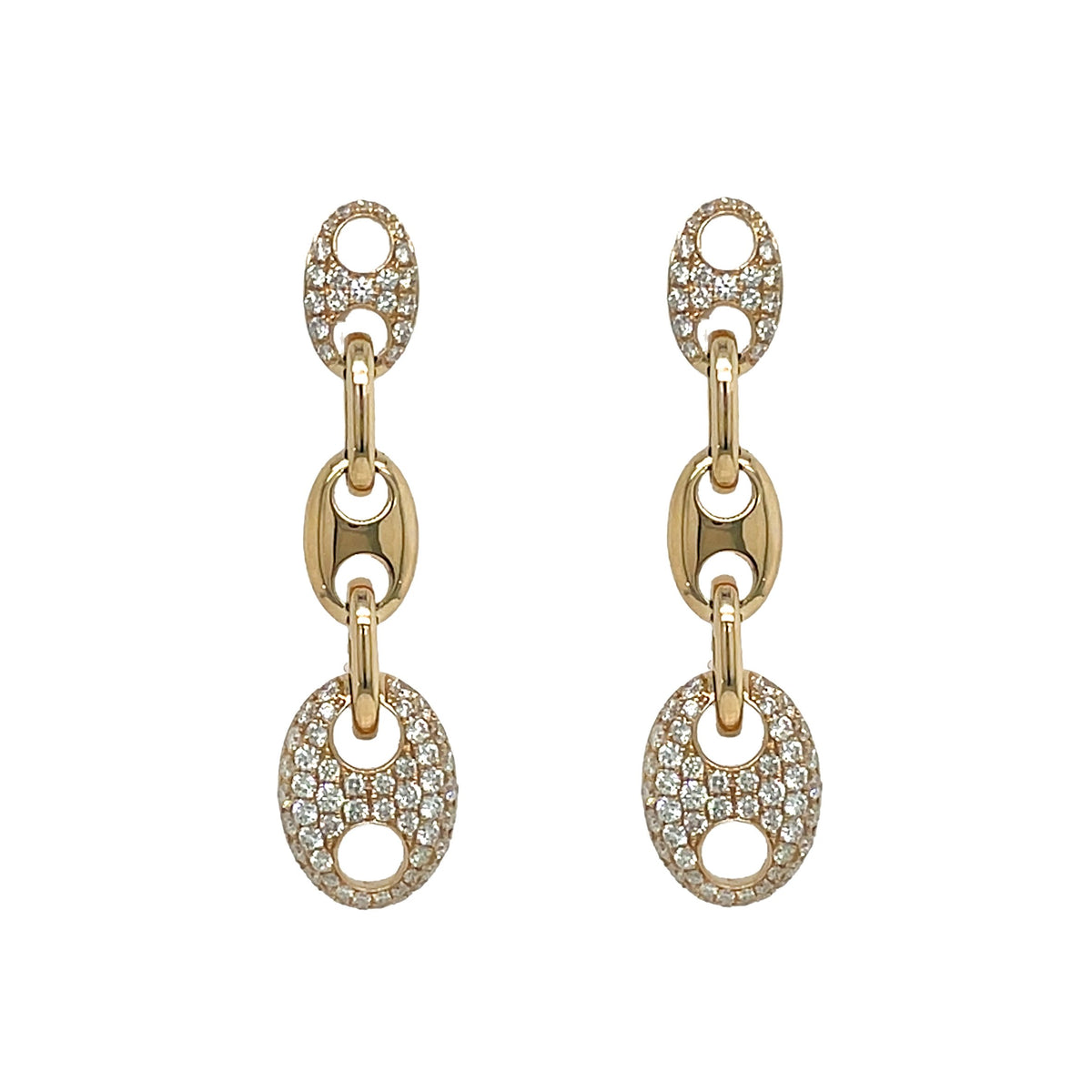 18kt yellow gold micro pave set round brilliant diamond link earrings.