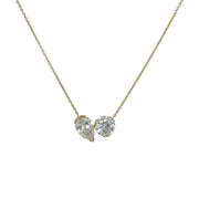 14kt yellow gold flat prong set laboratory grown pear and round brilliant diamond pendant.
