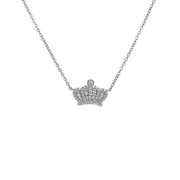 18kt white gold micro prong set baguette and round brilliant diamond crown pendant.