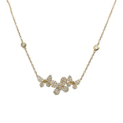 18kt yellow gold micro pave set round brilliant diamond multi-cluster butterfly pendant.
