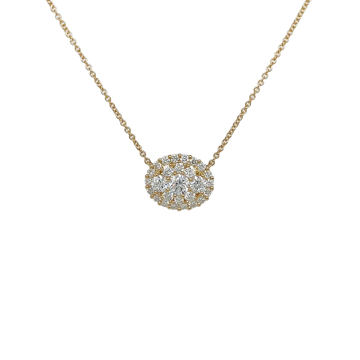 18kt yellow gold micro prong set round brilliant diamond cluster pendant.
