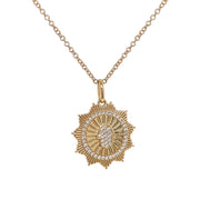 18kt yellow gold micro pave set round brilliant diamond hamsa pendant.