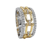 18kt yellow and white gold micro prong set round brilliant diamond link design ring.