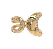 18kt yellow gold micro pave set round brilliant diamond 2-loop design ring.
