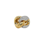 18kt yellow gold micro pave set round brilliant diamond link ring.