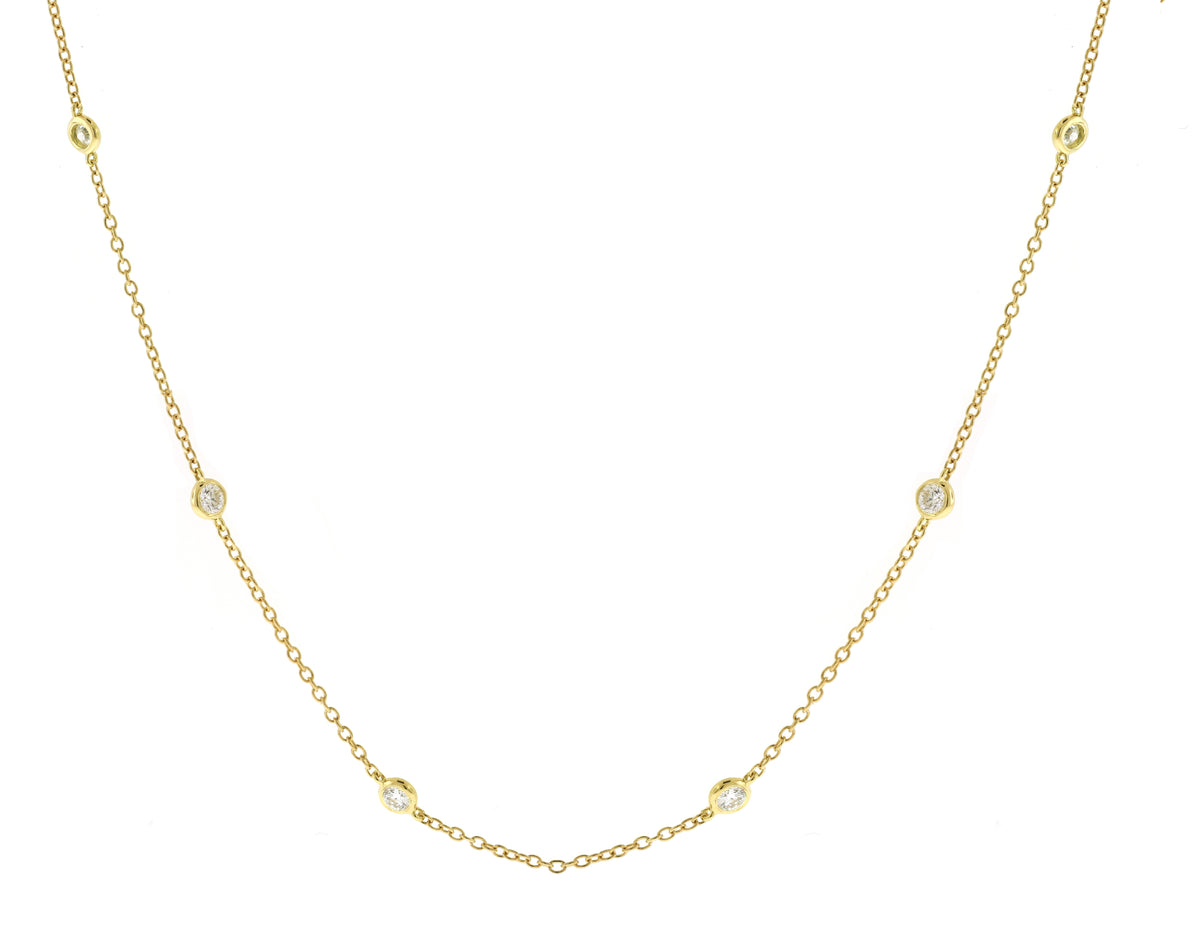 14kt yellow gold bezel set round brilliant diamond, diamonds-by-the-inch necklace.