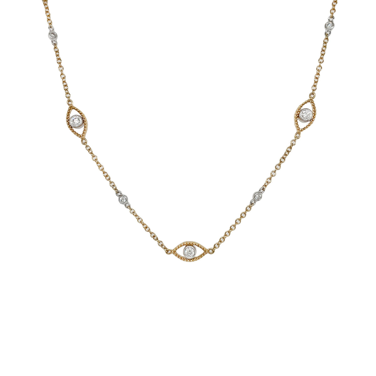 18kt Yellow and White Gold Diamond Evil Eye Necklace