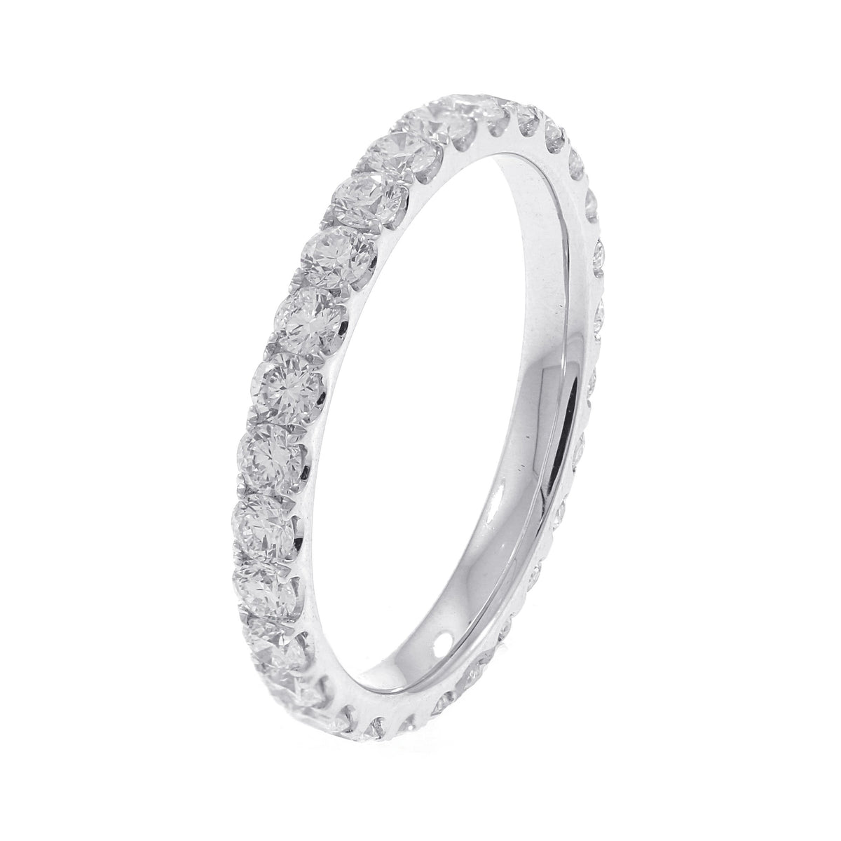 18kt white gold micro prong set round brilliant diamond eternity band.