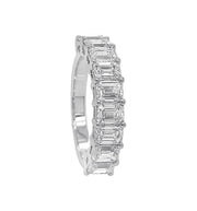 18kt white gold mutual prong set emerald cut diamond half-way band.