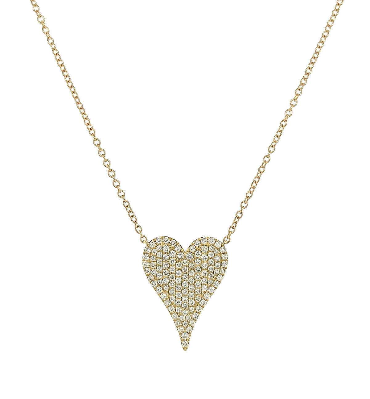 18kt yellow gold micro pave set round brilliant diamond heart pendant.