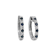14kt White Gold Diamond and Blue Sapphire Hoops
