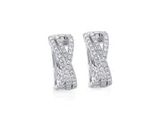 18kt white gold micro prong set round brilliant diamond criss cross huggie earrings