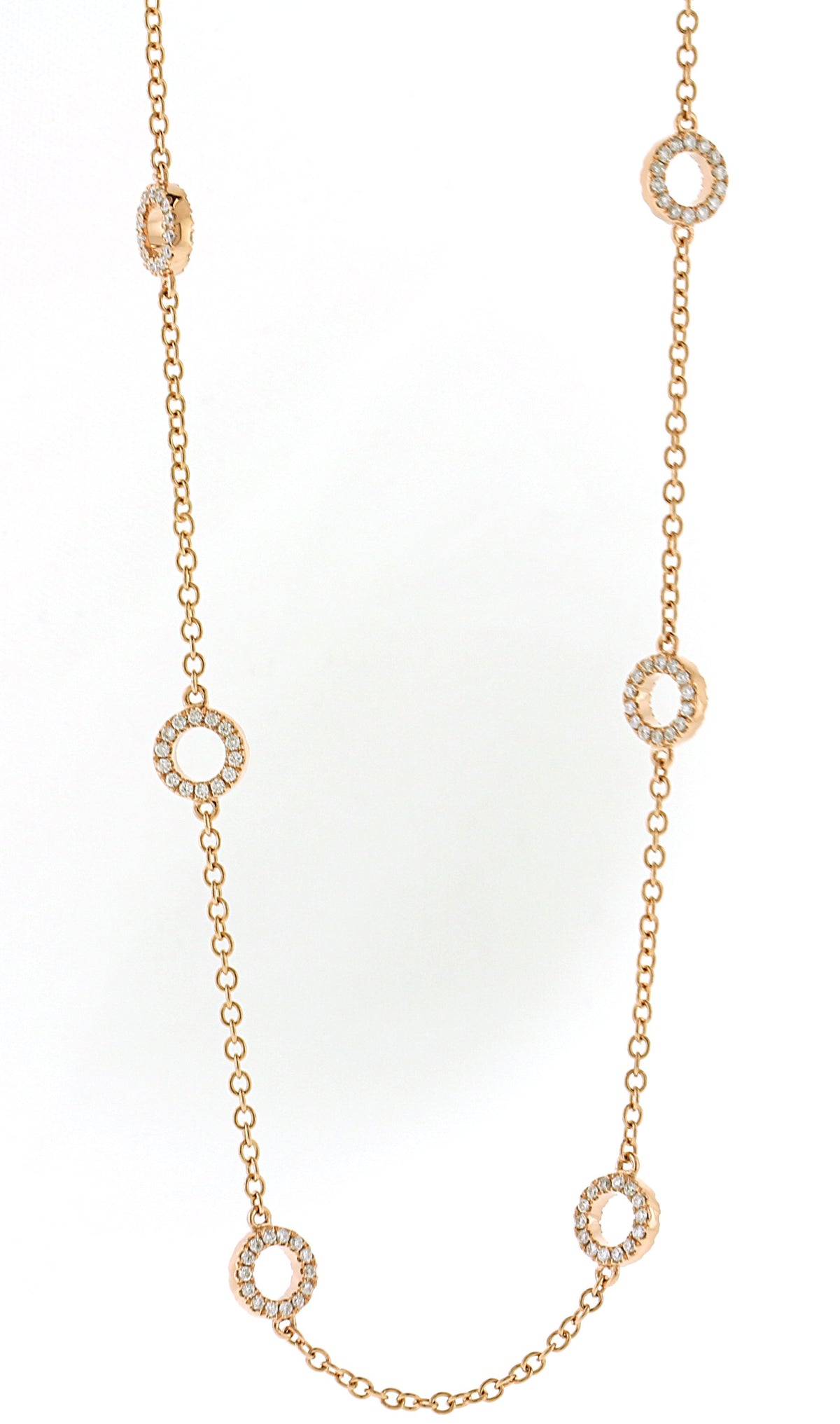 18kt rose gold micro prong set round brilliant diamond, diamonds-by-the-inch necklace.