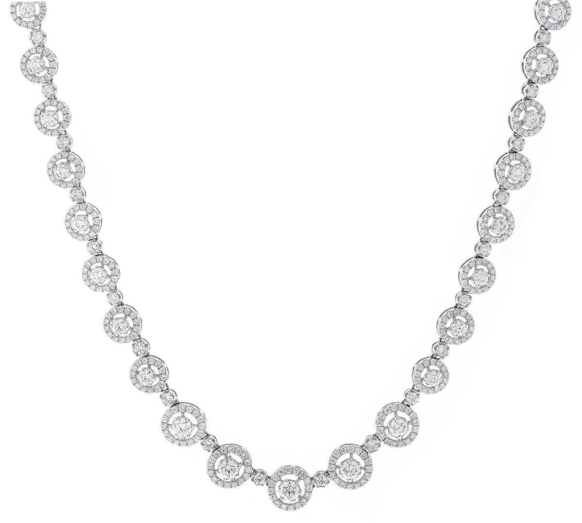 18kt white gold micro pave and 6 prong set round brilliant diamond eternity circle link necklace