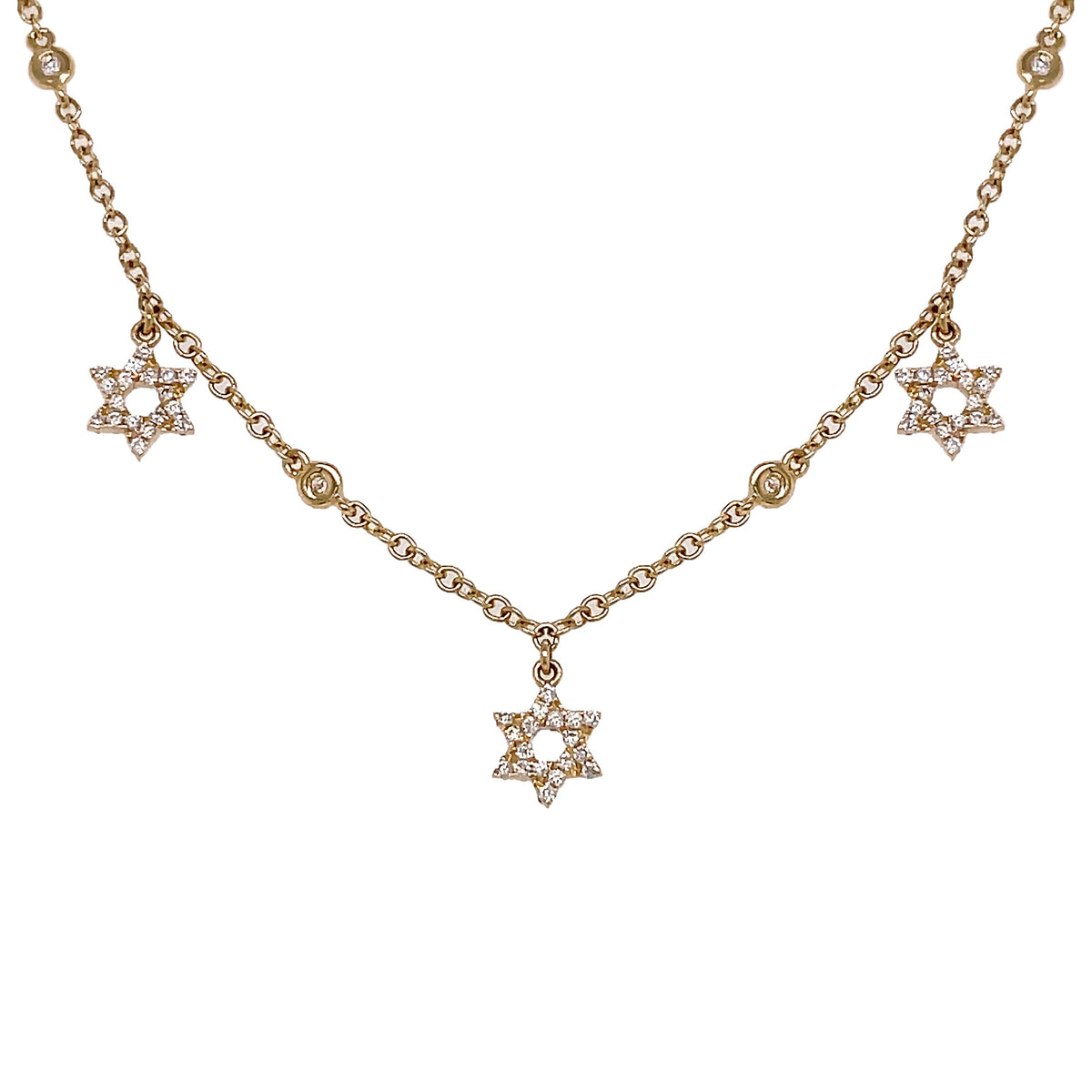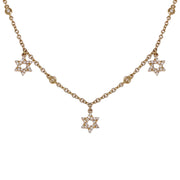 18kt yellow gold micro prong set round brilliant diamond dangling star diamonds-by-the-inch necklace.