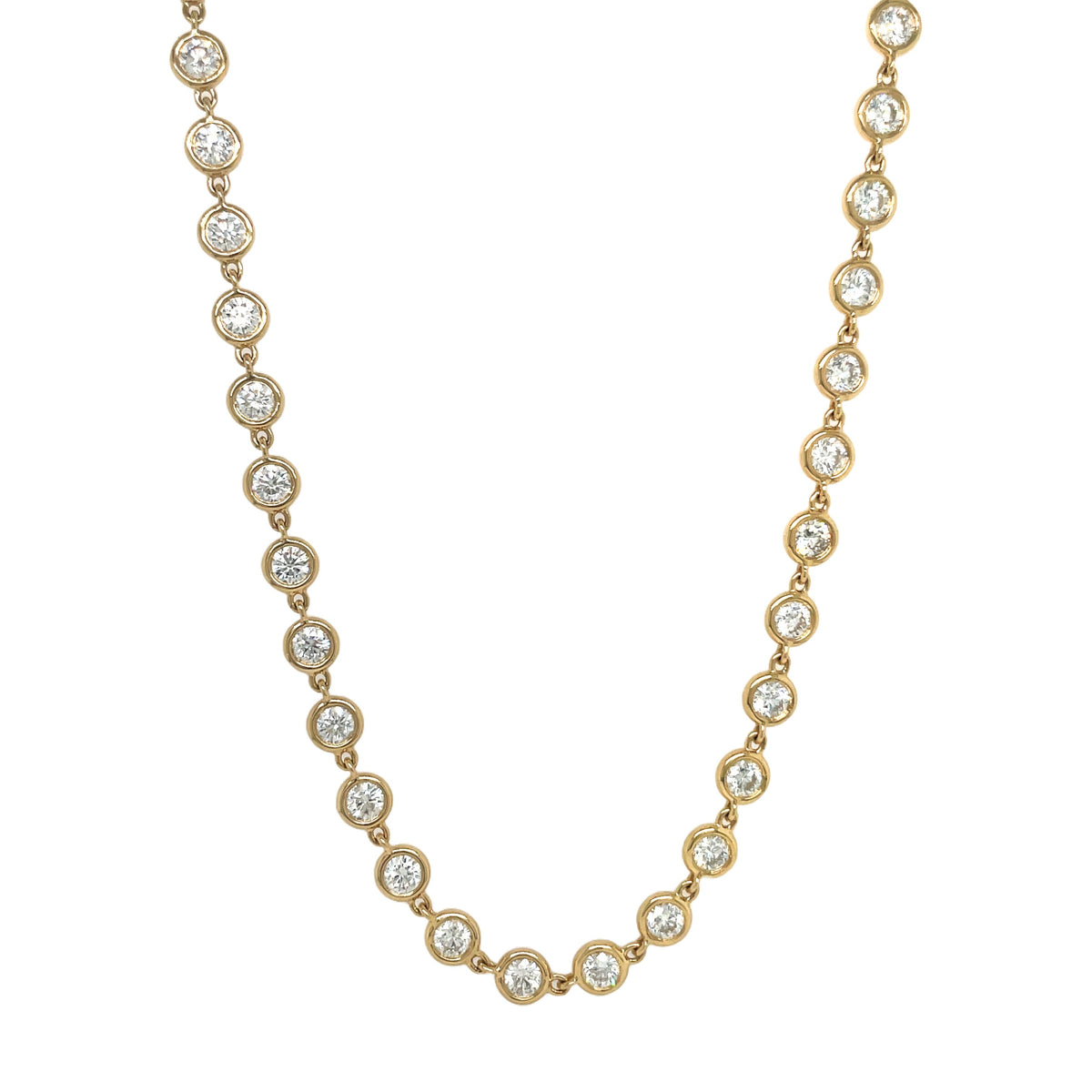 18kt yellow gold and bezel set round brilliant diamond, diamonds-by-the-inch necklace.