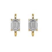 14kt yellow gold 4 prong set laboratory grown emerald cut diamond huggie earring with push backs.