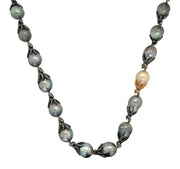 18kt Black and Yellow Gold Diamond and Pearl Necklace