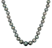 18kt white gold and multicolor tahitian south sea pearl necklace with micro pave set round brilliant diamond big lobster claw lock.