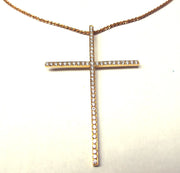 18kt Rose gold pave set round brilliant diamond cross pendant