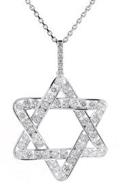 18kt white gold micro pave and channel set round brilliant diamond star of david pendant with 14kt white gold cable link chain