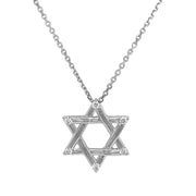 18kt white gold prong set round brilliant diamond star pendant with 14kt white gold cable link chain.