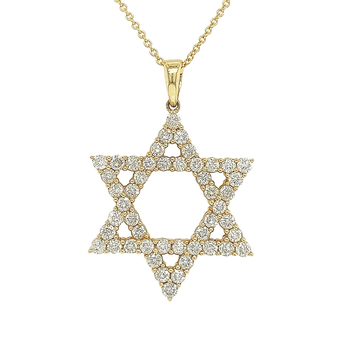18kt yellow gold mutual prong set round brilliant diamond star pendant.