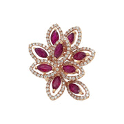18kt rose gold prong set round brilliant diamond and ruby multi-cluster ring.