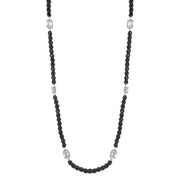 18kt white gold prong set black diamond and baguette, emerald and round brilliant diamond tennis necklace.
