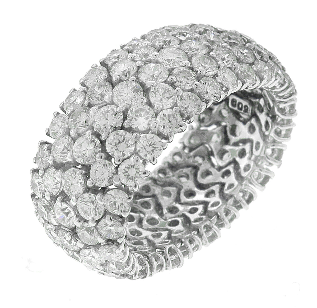 18kt white gold prong set round brilliant diamond 5 row flex eternity band