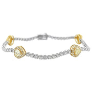 18kt white and yellow gold prong set round brilliant diamond and yellow diamond tennis bracelet.