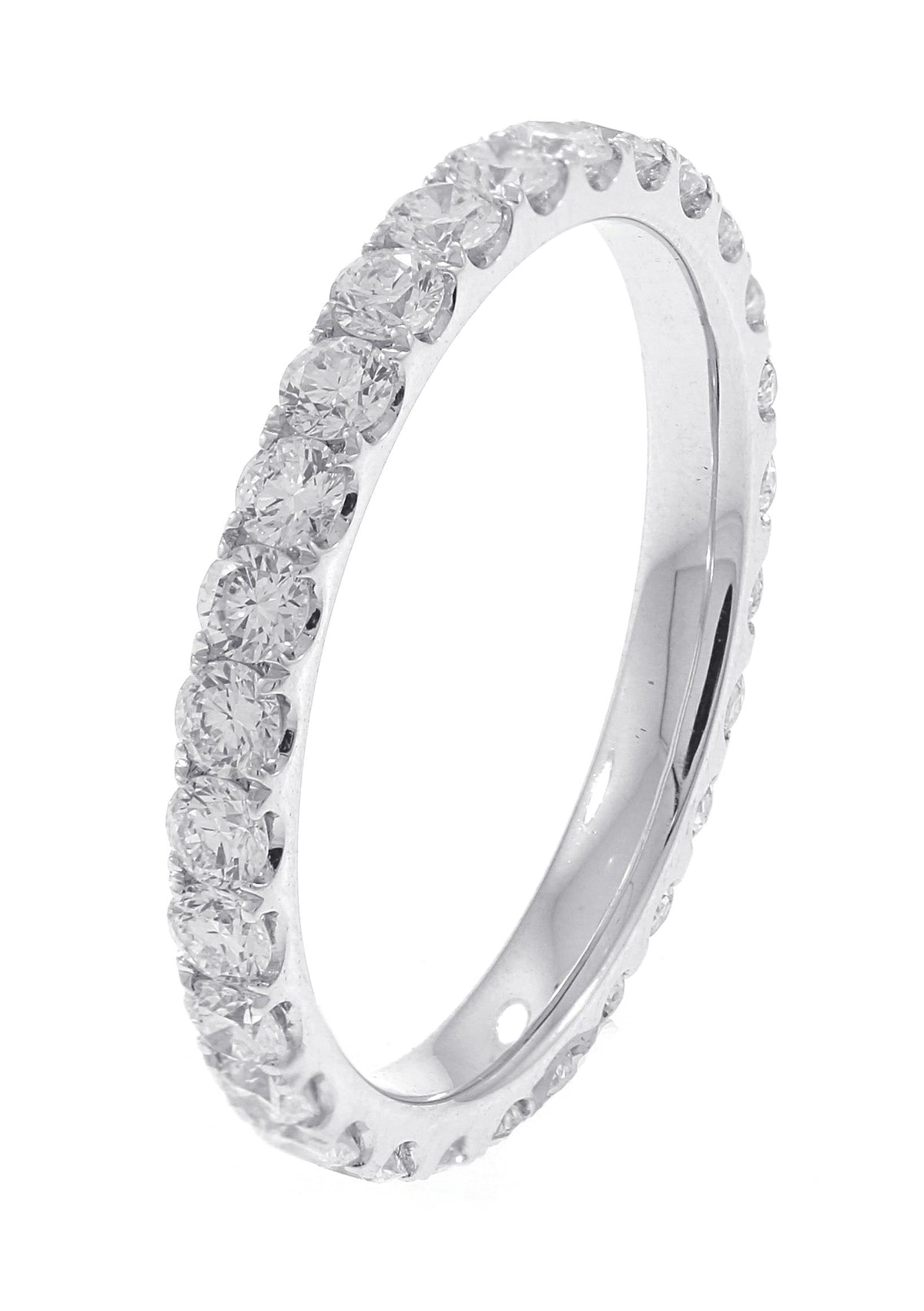 18kt white gold micro prong set round brilliant diamond eternity band.