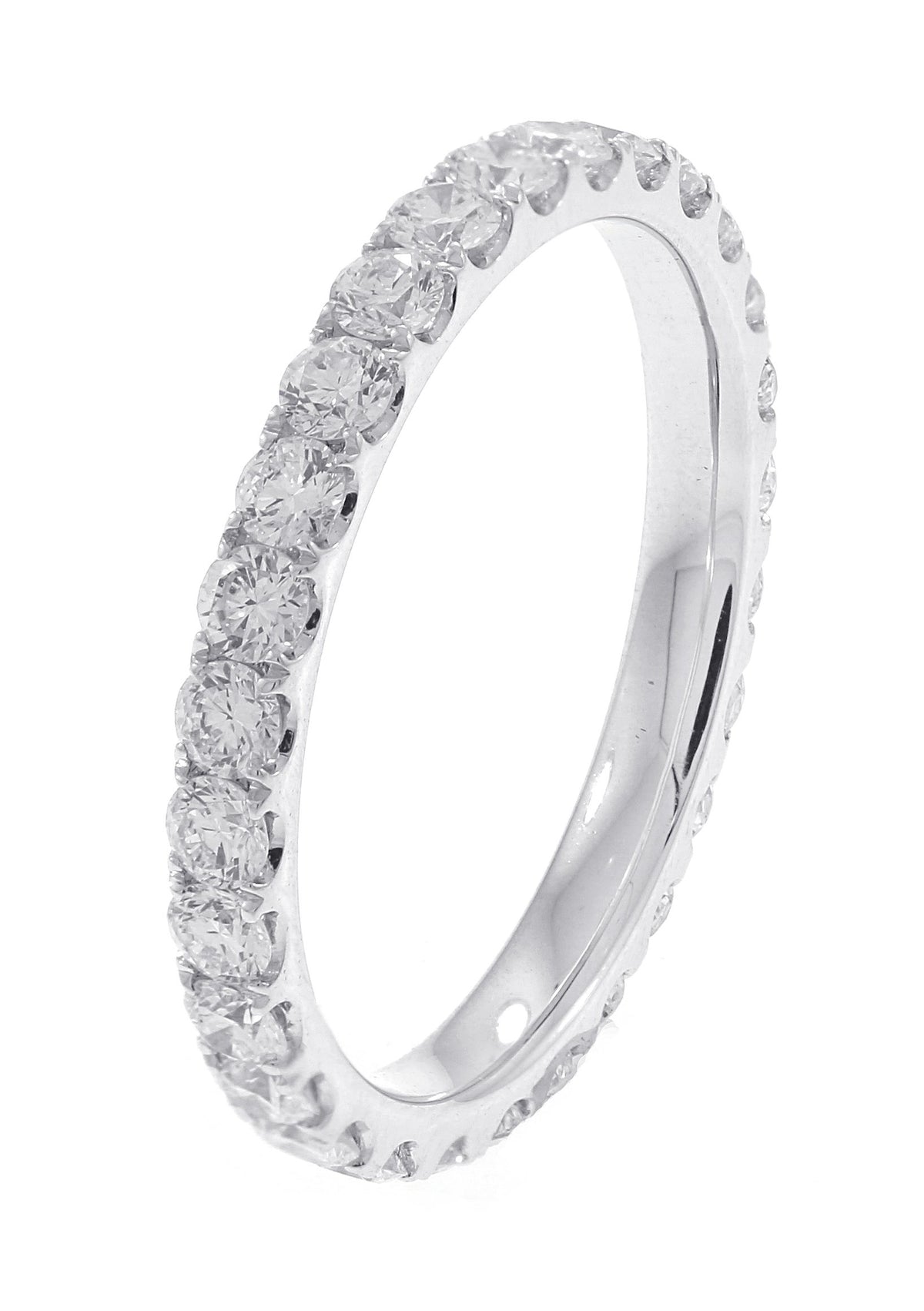 18kt white gold micro prong set round brilliant diamond eternity band.