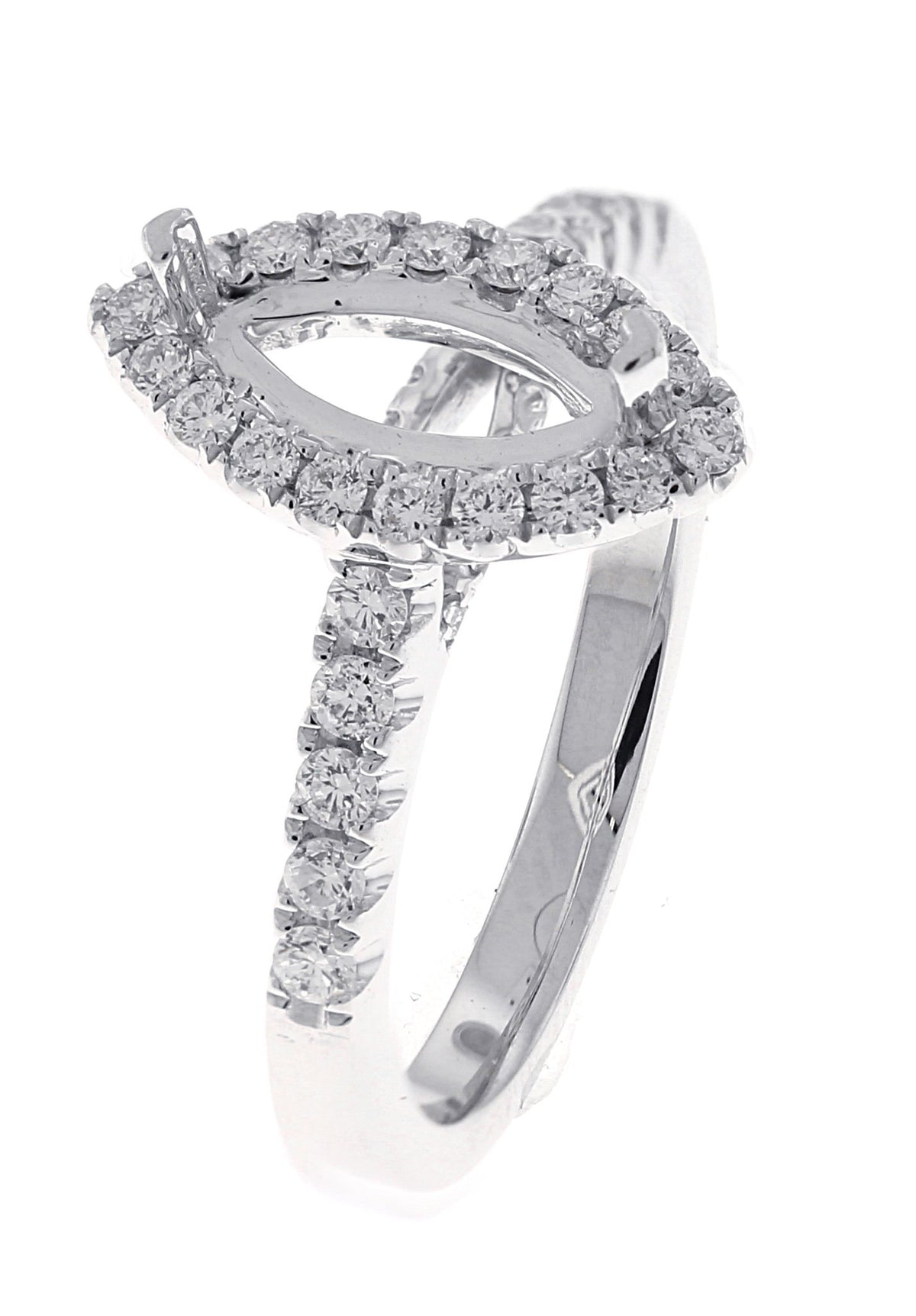 18kt white gold micro prong set round brilliant diamond marquise shape halo semi mount.