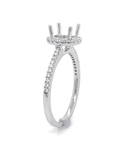 18kt white gold micro prong set round brilliant diamond round halo semi-mount.