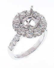 18kt white gold micro prong set round brilliant diamond setting with round diamond halo