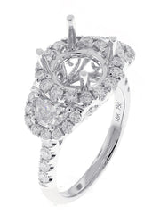 18kt white gold micro prong set round brilliant diamond round shape halo semi mount with prong set half moon on sides.