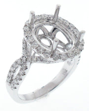 18kt White gold Mutual prong set round Brilliant Diamond Oval halo with twist split shank semi mount