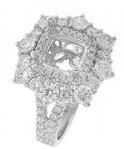 18kt white gold micro pave and prong set round brilliant diamond double row halo setting with points and split diamond shank