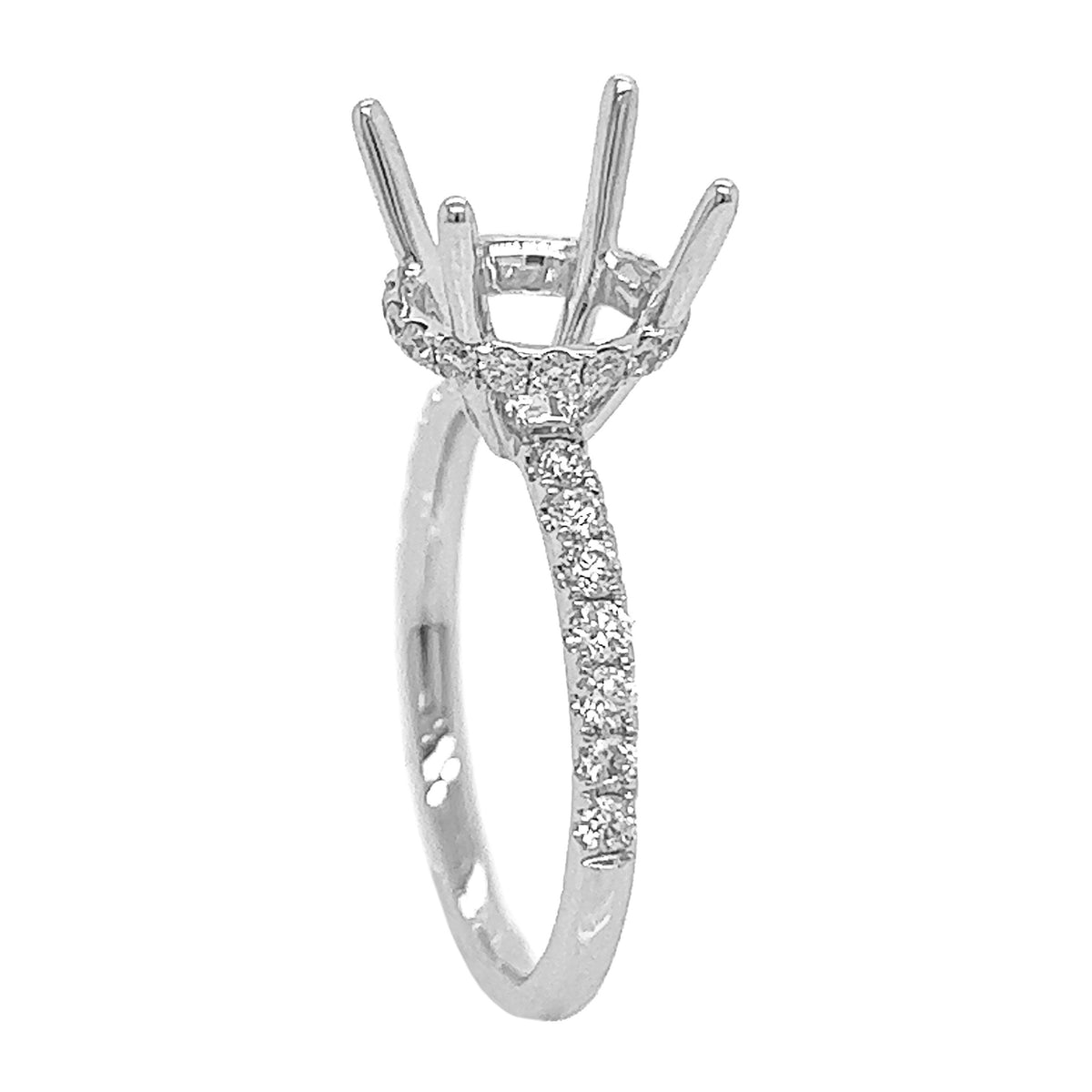 18kt white gold micro prong set round brilliant diamond under-halo semi-mount.