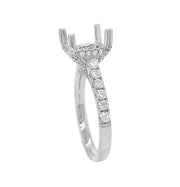 18kt white gold micro prong set round brilliant diamond semi-mount with diamonds on the gallery and shank.